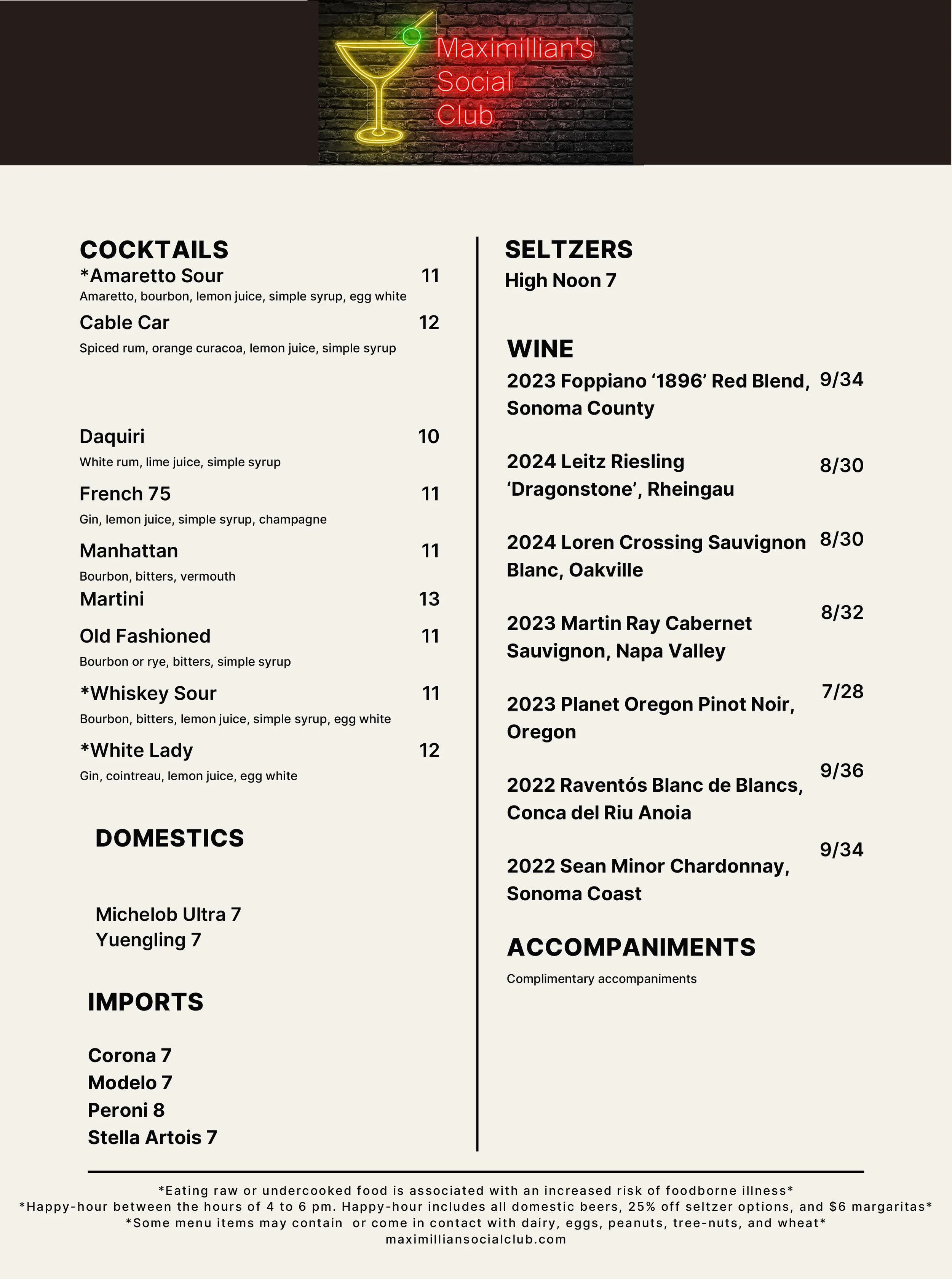 Maximillian’s Social Club is a casual yet elevated lounge, now open in Downtown Norman at the corner of Main and Porter in the new EDO district!